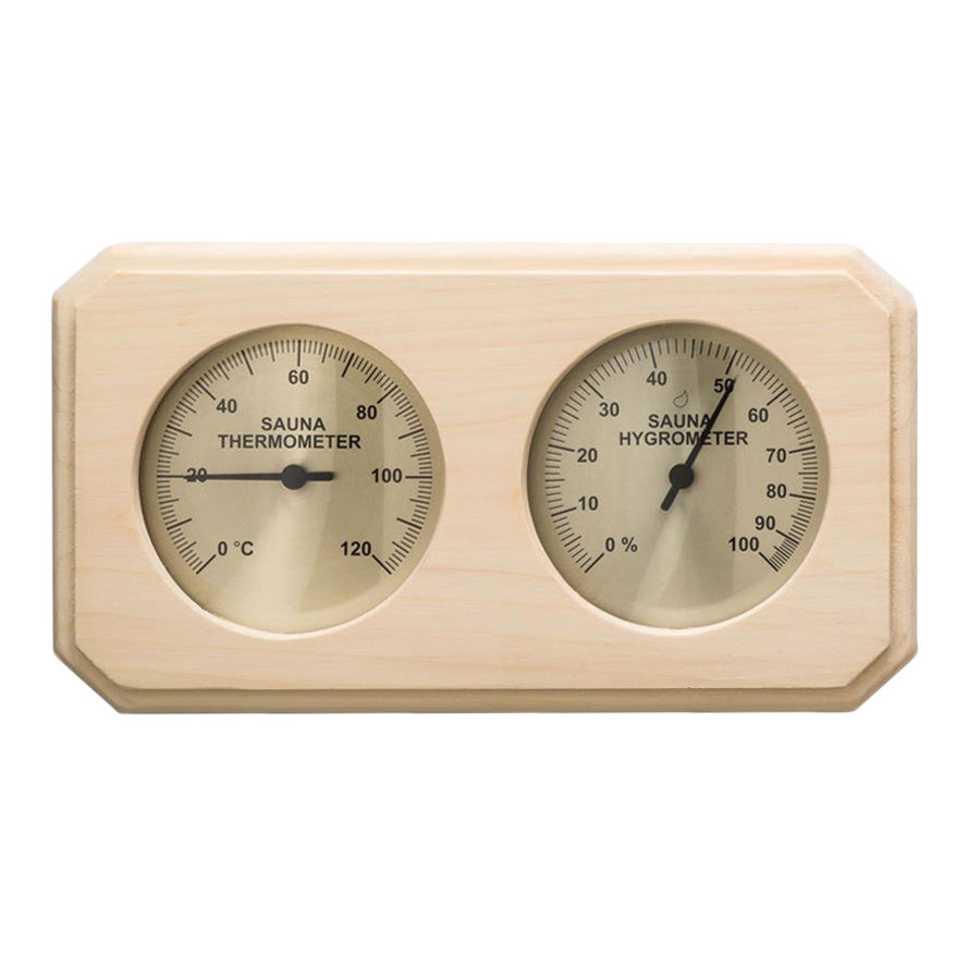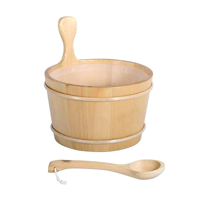 - Inclusi poggiatesta in legno, protezione stufa, secchio e mestolo in legno, clessidra, termo igrometro ed essenze
